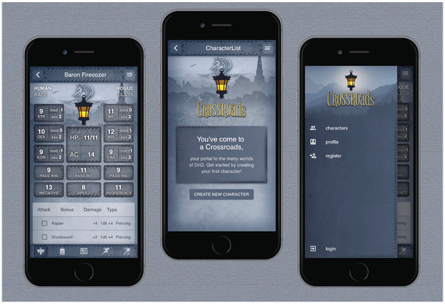 D&D character creation apps are something I want to use, but have never found one that I’ve liked. I’ve tried other D&D apps in the past, but there is always something missing that hurts the whole experience. The apps I have tried would drain my battery, have complicated layouts, and felt less like a character sheet and more like an excel spreadsheet. A D&D companion tool app could be very useful, but none have achieved everything I’ve wanted. Recently, I learned about a new Kickstarter called Crossroads. Crossroads is an application being designed by SpearFrog Software with the goal of making a beautiful and easy to use app that streamlines the character creation process